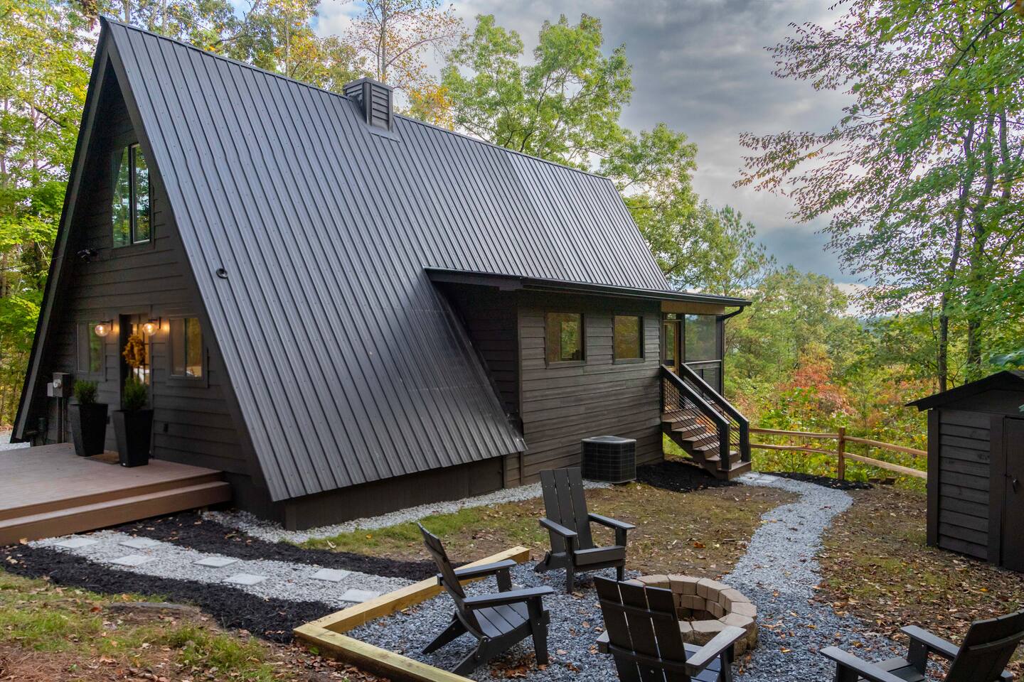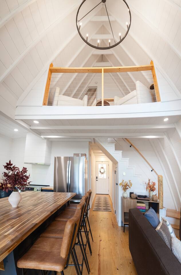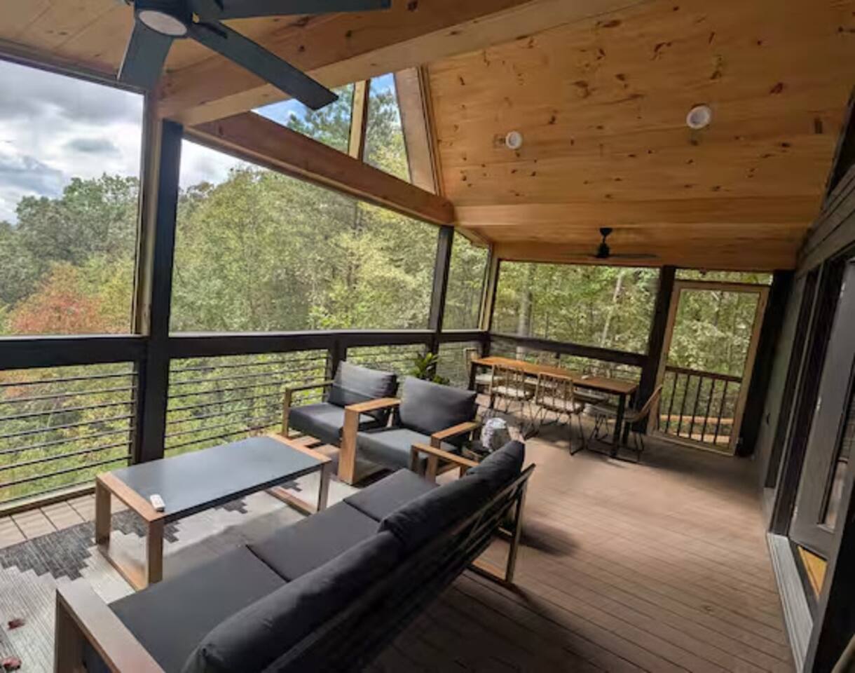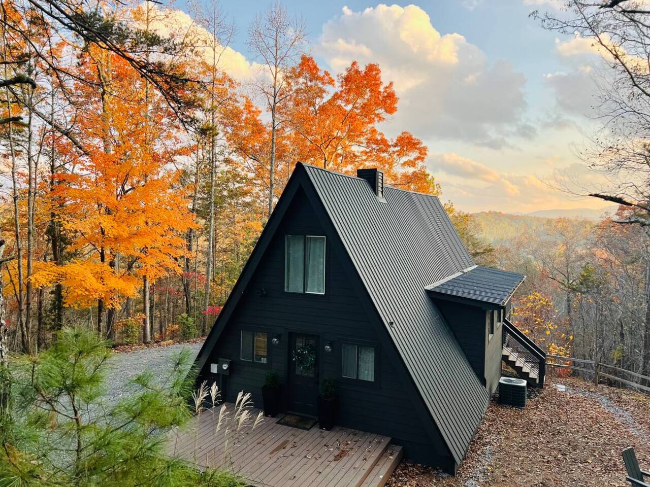 Nestled in the peaceful serenity of Mineral Bluff, Georgia, this remodeled A-frame cabin perfectly blends modern comfort with rustic charm. Just a short drive from the vibrant downtowns of Blue Ridge and McCaysville, you’ll enjoy the best of both worlds—quiet mountain seclusion and easy access to shops, restaurants, and outdoor adventures. 💛 Add this A-frame to your wishlist by clicking the ❤️ in the upper-right corner of the page. Inside, you’ll find Cozy charm: Warm wood accents and thoughtful touches create a welcoming retreat. Fully equipped kitchen: Everything you need to prepare home-cooked meals or casual breakfasts before exploring. Comfortable sleeping: A king bed upstairs and queen bed downstairs ensure restful nights for couples or families. Modern amenities: Smart TV, record player, and a pack ’n play for little ones. Washer & dryer: Perfect for light laundry during your stay. Outside, enjoy Spacious screened porch: Vaulted ceiling, comfy lounge seating, and an outdoor dining table for meals or board games. Relaxing hot tub: Perfect for unwinding under the stars. Fire pit: Ideal for s’mores and stargazing. EV charger: Charge your vehicle right at the cabin. Propane BBQ & porch heater: Grill and relax year-round. Explore the area Downtown Blue Ridge & McCaysville: Enjoy boutique shopping, local breweries, art galleries, and farm-to-table dining. Outdoor adventures: Endless hiking, mountain biking, fishing, and waterfall trails in the North Georgia Mountains. ✨ Book your mountain escape today and experience the peaceful magic of Mineral Bluff!