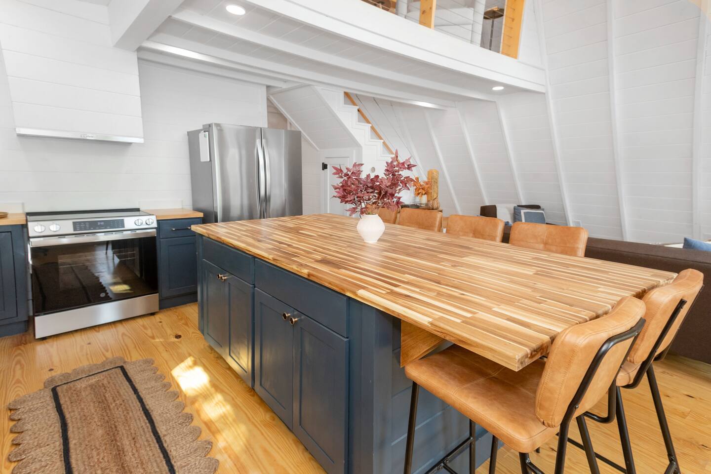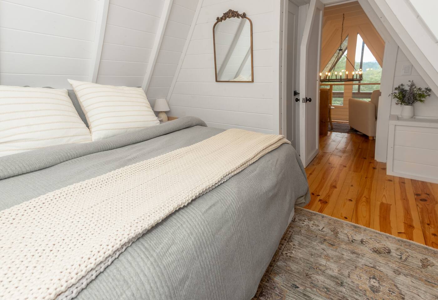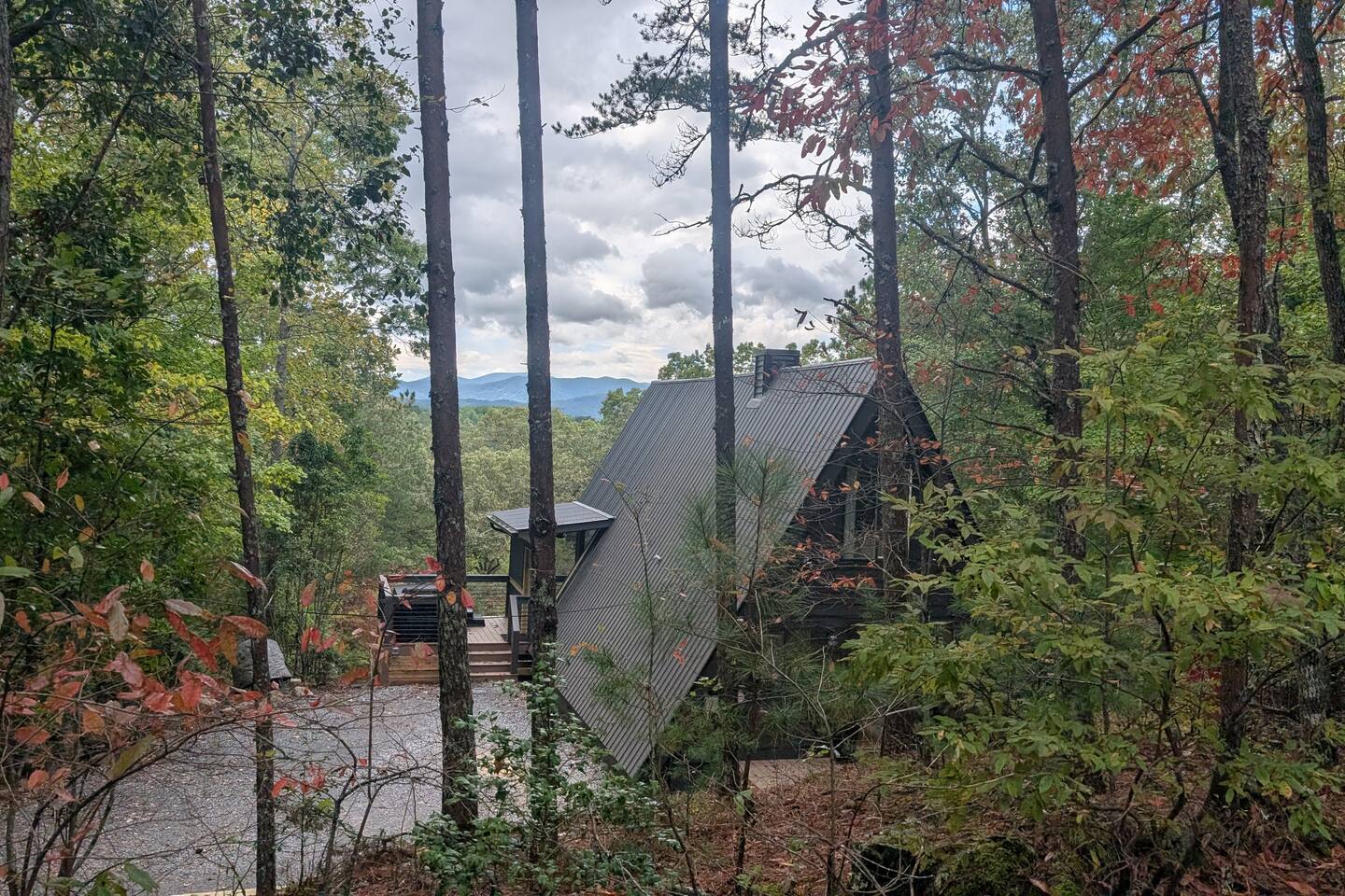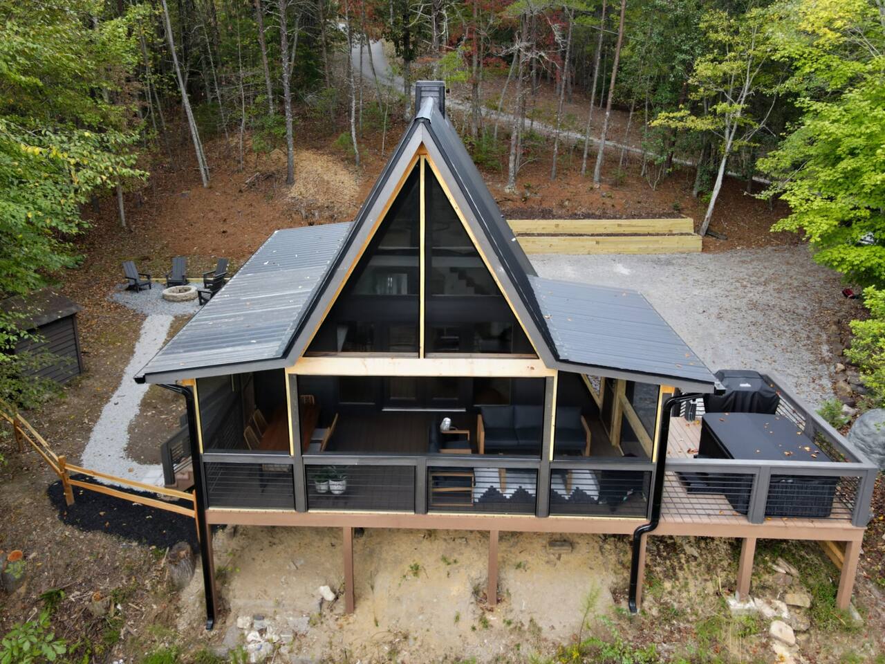 Nestled in the peaceful serenity of Mineral Bluff, Georgia, this remodeled A-frame cabin perfectly blends modern comfort with rustic charm. Just a short drive from the vibrant downtowns of Blue Ridge and McCaysville, you’ll enjoy the best of both worlds—quiet mountain seclusion and easy access to shops, restaurants, and outdoor adventures. 💛 Add this A-frame to your wishlist by clicking the ❤️ in the upper-right corner of the page. Inside, you’ll find Cozy charm: Warm wood accents and thoughtful touches create a welcoming retreat. Fully equipped kitchen: Everything you need to prepare home-cooked meals or casual breakfasts before exploring. Comfortable sleeping: A king bed upstairs and queen bed downstairs ensure restful nights for couples or families. Modern amenities: Smart TV, record player, and a pack ’n play for little ones. Washer & dryer: Perfect for light laundry during your stay. Outside, enjoy Spacious screened porch: Vaulted ceiling, comfy lounge seating, and an outdoor dining table for meals or board games. Relaxing hot tub: Perfect for unwinding under the stars. Fire pit: Ideal for s’mores and stargazing. EV charger: Charge your vehicle right at the cabin. Propane BBQ & porch heater: Grill and relax year-round. Explore the area Downtown Blue Ridge & McCaysville: Enjoy boutique shopping, local breweries, art galleries, and farm-to-table dining. Outdoor adventures: Endless hiking, mountain biking, fishing, and waterfall trails in the North Georgia Mountains. ✨ Book your mountain escape today and experience the peaceful magic of Mineral Bluff!